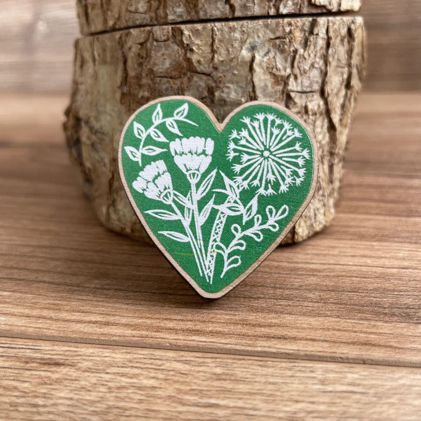 Add a touch of creativity to your outfit or bag with our beautifully crafted wooden pin badges, laser-cut and digitally printed with our original linocut artwork.