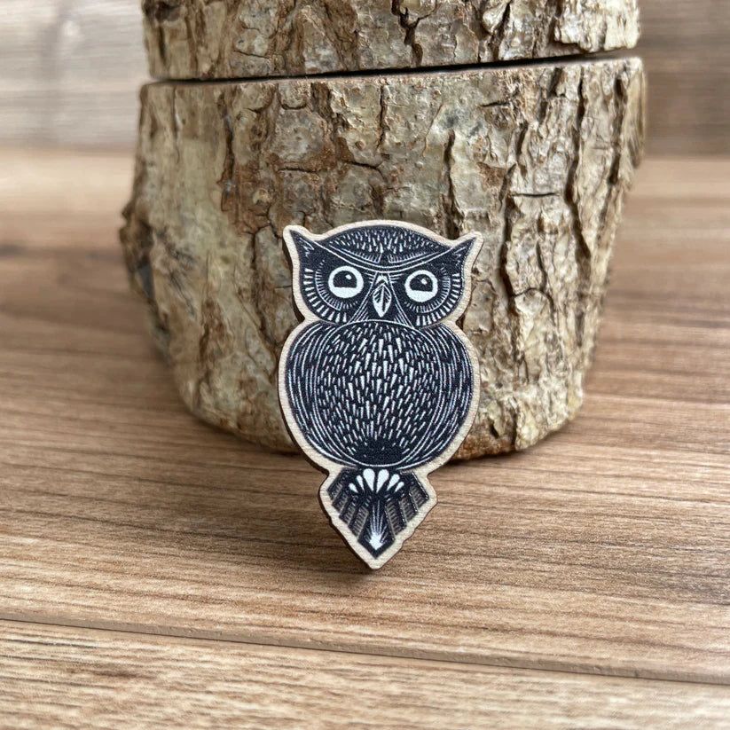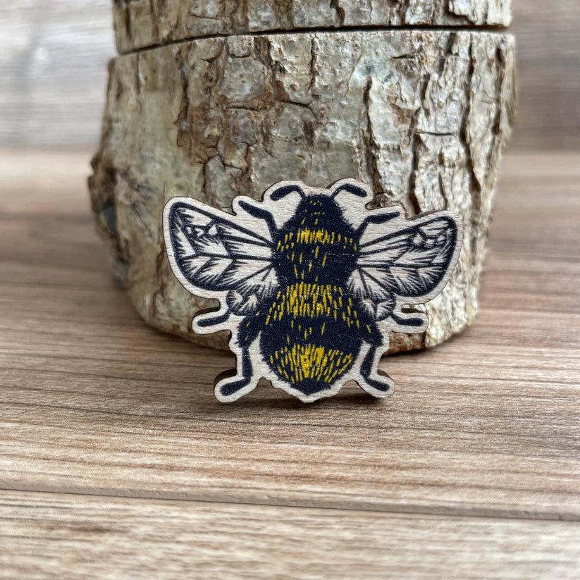 Wooden Pin Badges – Unique Linocut Design by Jackdaw & Bear